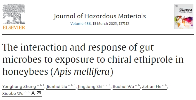中文標題:《蜜蜂(Apis mellifera)腸道微生物對手性乙蟲腈暴露的相互作用與響應》