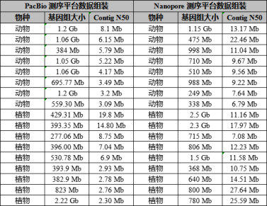 擁有三代測序平臺PacBio測序全平臺和Nanopore測序全平臺,具有豐厚的雙平臺組裝及上萬種物種基因組組裝經驗。